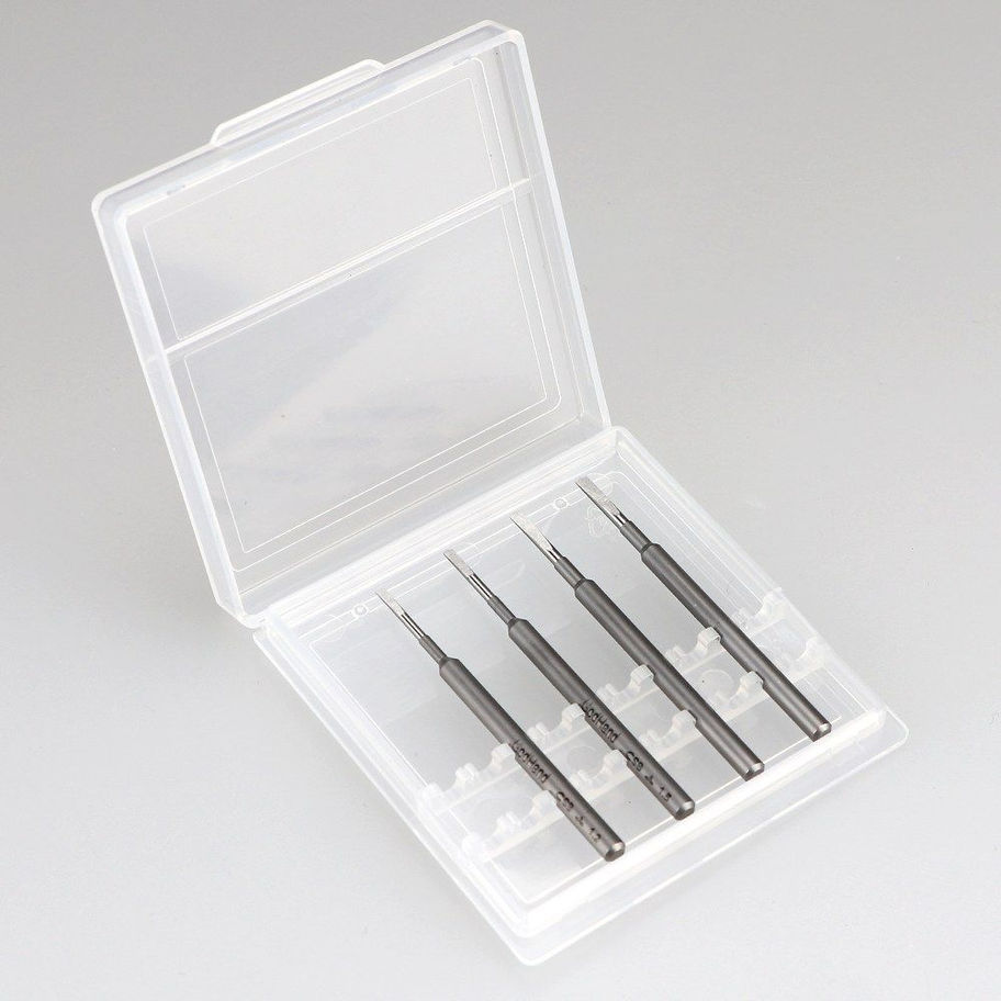 Set of 4 drill bits of 2.1mm/2.2mm/2.6mm/2.7mm. Portable storage case included.